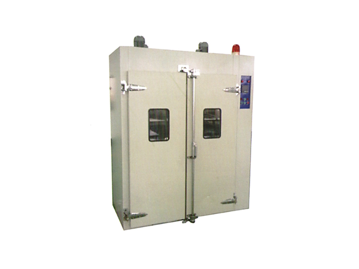 循环烘箱一般有加热管,有循环风机的烘箱都可称为热风循环烘箱,因为不管烘箱什么结构,风向水平还是垂直,归根到底都是热风在里面循环,所以都可统称为热风循环烘箱,如电热鼓风烘箱,对开门高温灭菌烘箱等。但是一般行业中所称热风循环烘箱大多数还是特指如上图所示的烘箱,其它烘箱都是由上图烘箱演变而来,比如有了高温灭菌的要求,风机改成风冷离心循环风机,前后开门,风道也做出了改变,就变成对开门高温灭菌烘箱。分别是单门单车,两门两车,两门四车,三门六车,四门八车。