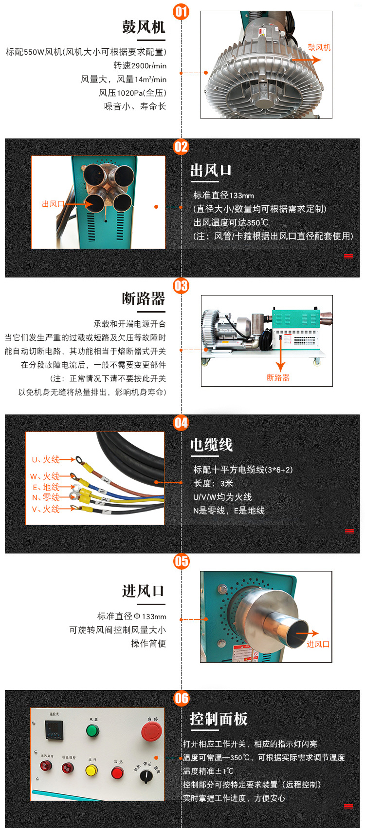 产品功能: 高温热风、热风生发、环保热源、350℃高温热风